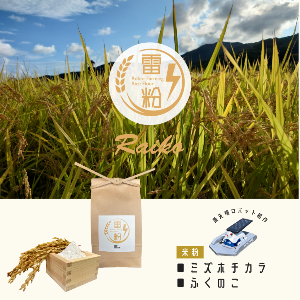 収穫や耕起、雑草抑制、害獣対策などができる農業ロボット「雷鳥シリーズ」を用いて育てた米を米粉にしました。