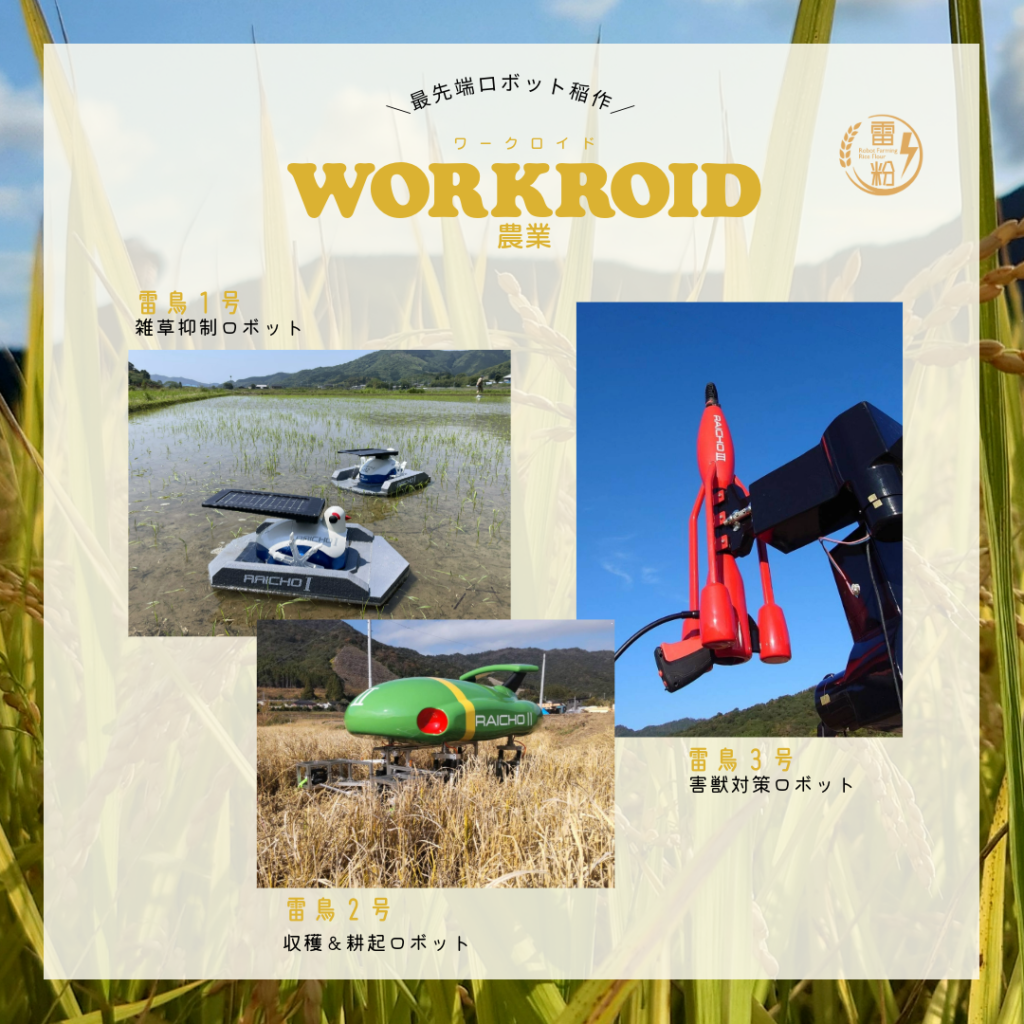 「雷粉」は、テムザックが、最先端ロボット技術を用いて労力を大幅に削減する稲作 “WORKROID農業” で育てた米を米粉にしたものです。耕作放棄が懸念される小規模圃場や不整形地でも、収穫や耕起、雑草抑制、害獣対策などができる農業ロボット「雷鳥シリーズ」を用いることで、手間を最小限にして稲作を維持することが可能となります。